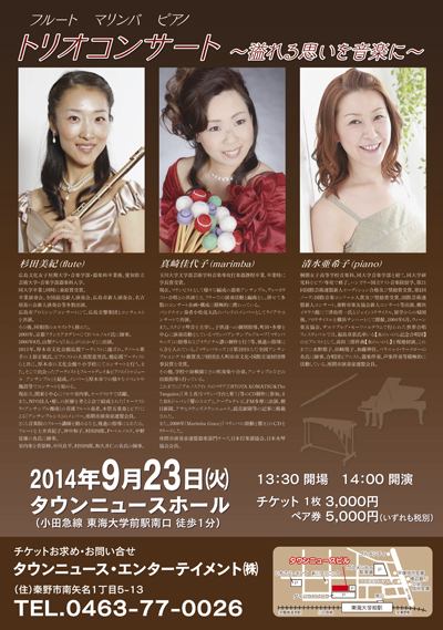 【出演】杉田美紀(flute)、真崎佳代子(marimba)、清水亜希子(piano)
