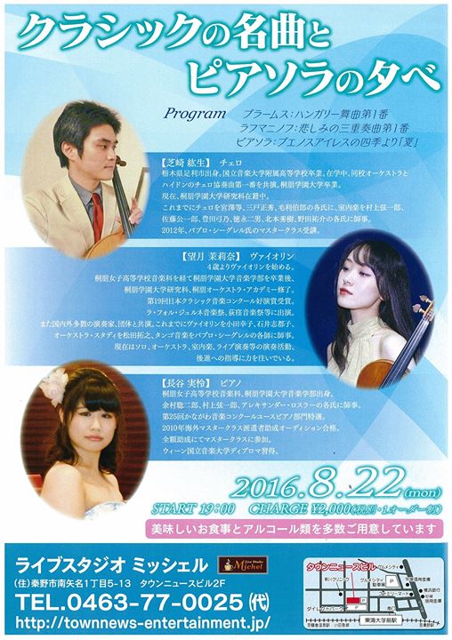 さて、明日19:00からは「クラシックの名曲とピアソラの夕べ」です!