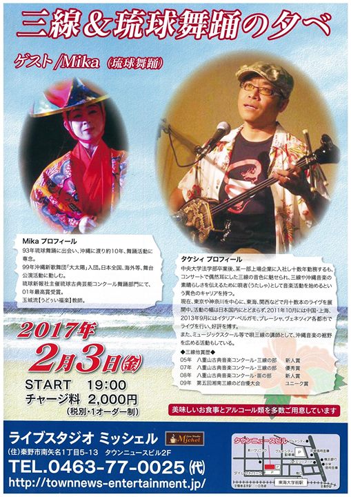 19:00からは、タケシイ&ミカさんによる、沖縄音楽と琉球舞踊の夕べをお届け致します!