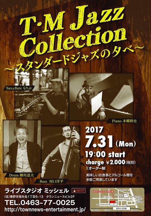今夜、19:00からは「T・M Jazz Collection〜スタンダードジャズの夕べ〜」ライブです!