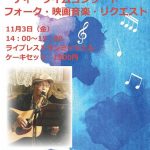 本日11/3(金)14:00からは、八木光二さんによるフォーク弾き語りティータイムコンサートです!