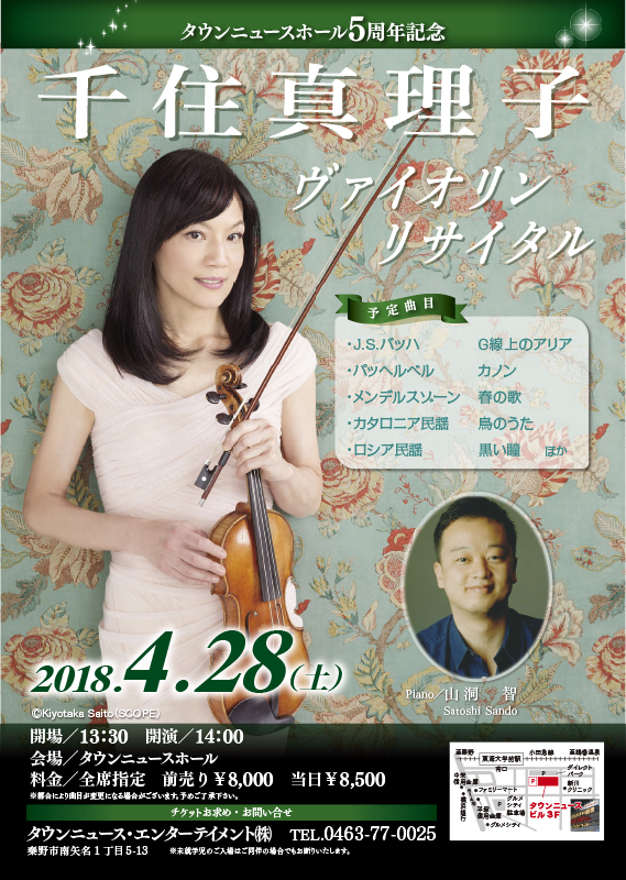 2018/4/28 千住真理子ヴァイオリンリサイタル【おかげさまでチケットは完売致しました】 2018 3/26 主催公演 2018年3月26日 タウンニュースホール5周年記念 千住真理子ヴァイオリンリサイタル 2018年4月28日(土曜日)開催 「タウンニュースホール5周年記念 千住真理子ヴァイオリンリサイタル」の チケットはおかげさまで完売致しました。 主催公演 よかったらシェアしてね! URLをコピーしました! URLをコピーしました! 明日、3/26(月)19:00からは、「フランス音楽の名曲とピアソラの夕べ」ライブです。 今夜、3/30(金)19:00からは、craze in blueによるライブです。 関連記事 第7回 ともに歌おう!加藤雅彦の歌声サロン 2025年7月11日 第6回 ともに歌おう!加藤雅彦の歌声サロン 2025年5月17日 第5回 ともに歌おう!加藤雅彦の歌声サロン 2025年3月10日 第4回 ともに歌おう!加藤雅彦の歌声サロン 2024年12月24日 第3回 ともに歌おう!加藤雅彦の歌声サロン 2024年12月20日 第2回 ともに歌おう!加藤雅彦の歌声サロン 2024年10月14日 秦野に贈る年の瀬ライブ2024 60&77記念 湯原昌幸ハッピーライブ 開催決定!! 2024年9月14日 第1回 ともに歌おう!加藤雅彦の歌声サロン 2024年7月2日