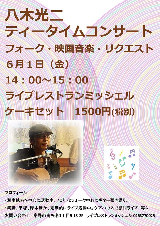 本日、14:00からは八木光二さんによるティータイムコンサートです♪
