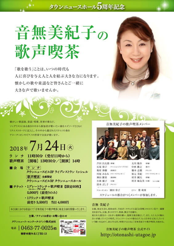 ※本公演における収益にて「音無美紀子の歌声喫茶」東北公演を開催いたします。