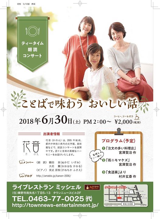 本日14:00からは、「ことばで味わうおいしい話」朗読コンサートです。