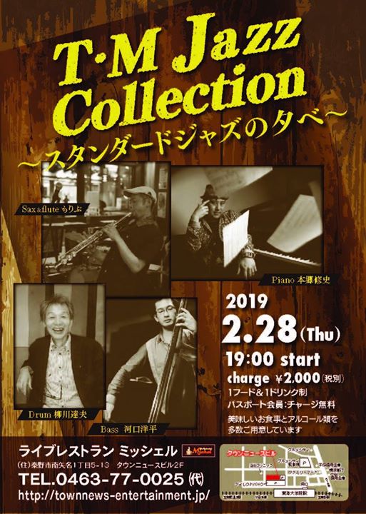 2/28(木)19:00からは「T・M Jazz Collection〜スタンダードジャズの夕べ〜」ライブです!