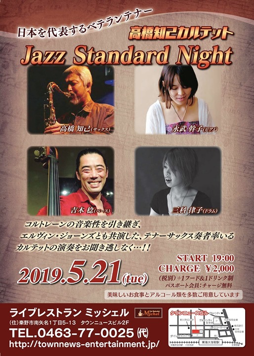 日本を代表するベテランテナー奏者、高橋知己率いるカルテットライブ?!