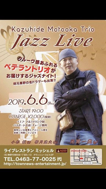 元岡さん率いるベテラントリオがお届けするジャズナイト!ピアノがリーダーのトリオは本当に素敵です✨しっとりと癒される時間は普段の忙しさを忘れさせてくれます?✨地元秦野の名ドラマーも出演するライブ、必聴です!