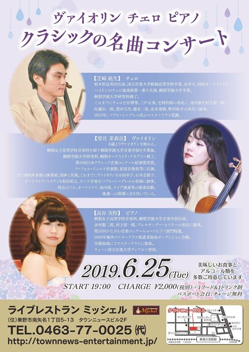 #ライブレストランミッシェル #タウンニュースエンターテイメント #今日のライブ #ヴァイオリン #チェロ #ピアノ #クラシック #名曲 #秦野市 #東海大学前駅