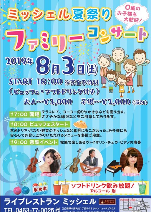 ミッシェル夏祭りファミリーコンサート、いよいよ明日です♪