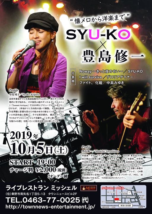 出演は、もんた&ブラザーズのギタリスト、豊島修一さんと、ボーカリストのSYU-KOさん♫