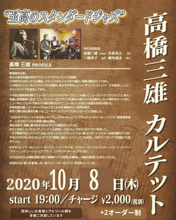 高橋三雄さんのユーモア溢れるMCも大変好評のこちらのライブ、長いお休み中も何度もお電話等で、次はいつあるの??とお問い合わせをいただいておりました?