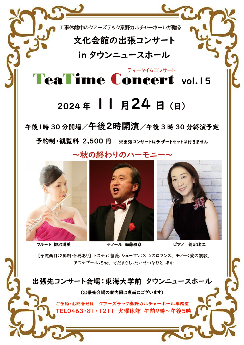 文化会館の出張コンサート in タウンニュースホール TeaTime Concert vol.15~秋の終わりのハーモニー~