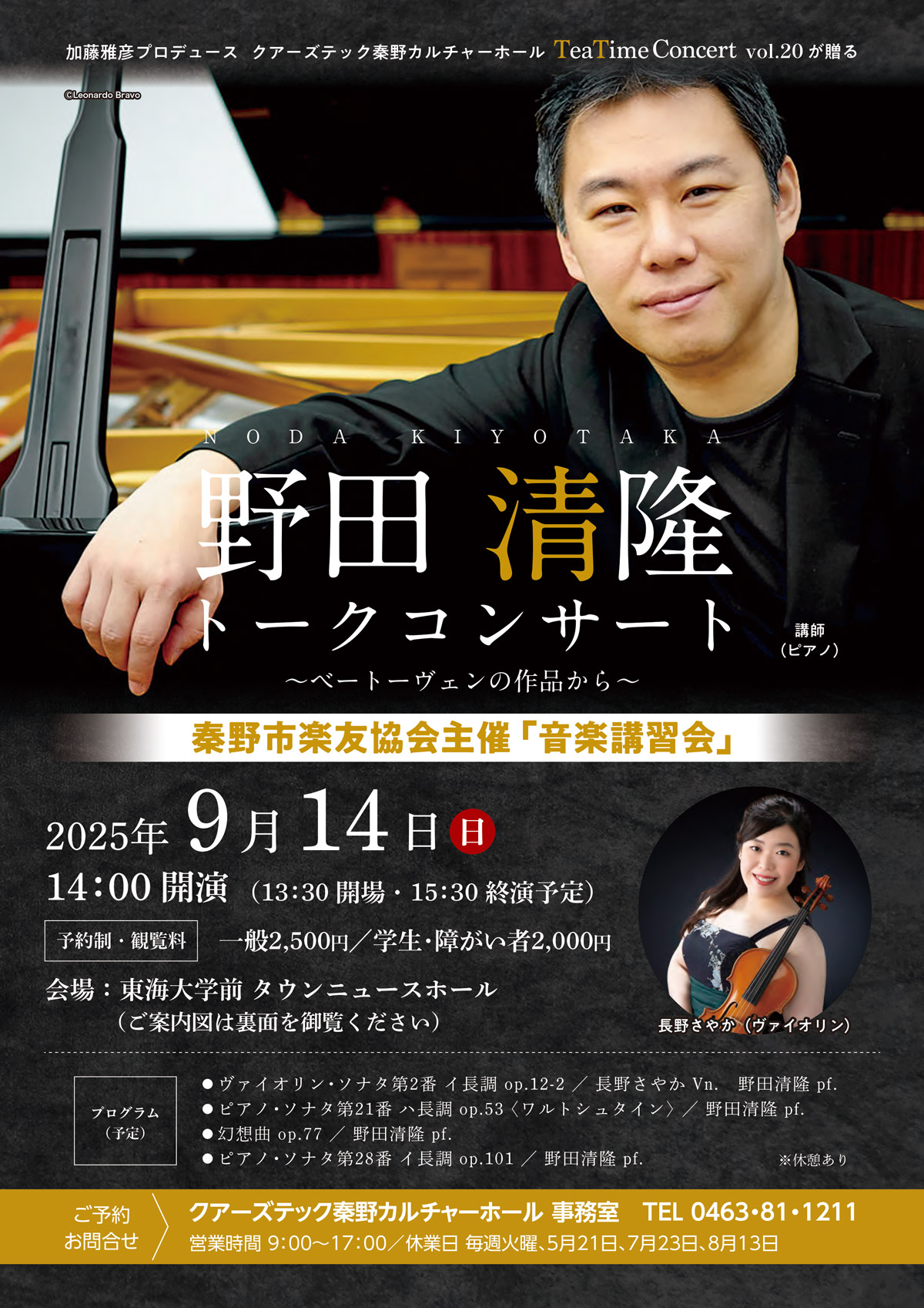 加藤雅彦プロデュース クアーズテック秦野カルチャーホール TeaTime Cocert vol.20が贈る 野田清隆トークコンサート