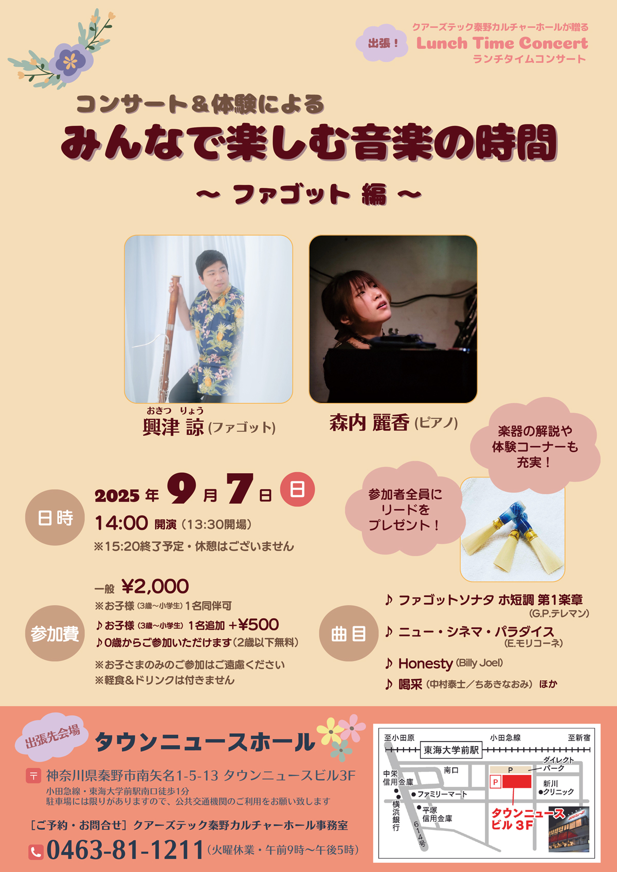 文化会館出張公演!ランチタイムコンサート コンサート&体験による みんなで楽しむ音楽の時間~ファゴット編~