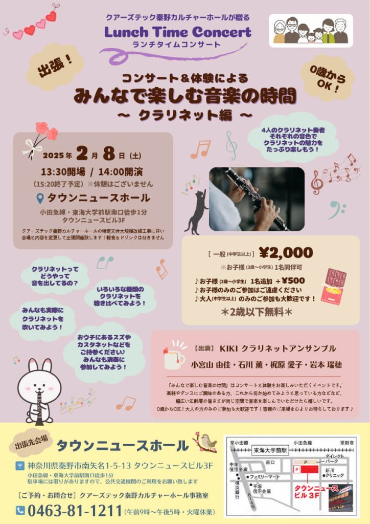 文化会館出張公演!ランチタイムコンサート コンサート&体験による みんなで楽しむ音楽の時間~クラリネット編~