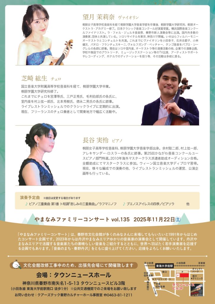 【出演】望月茉莉奈(ヴァイオリン)・芝崎紘生(チェロ)・長谷実怜(ピアノ)