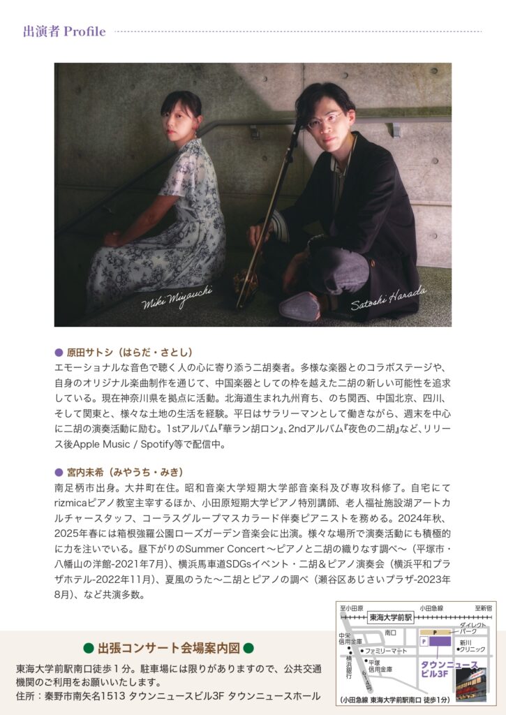 【出演】原田サトシ(二胡)・宮内未希(ピアノ)