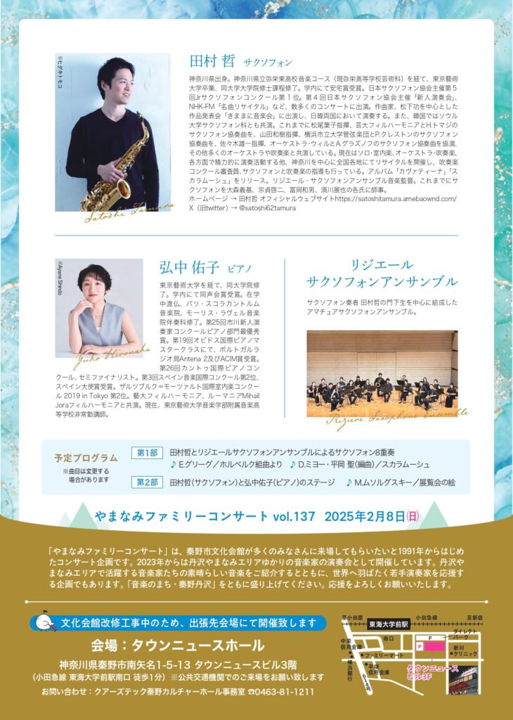 【出演】田村 哲(サクソフォン)・弘中 佑子(ピアノ)