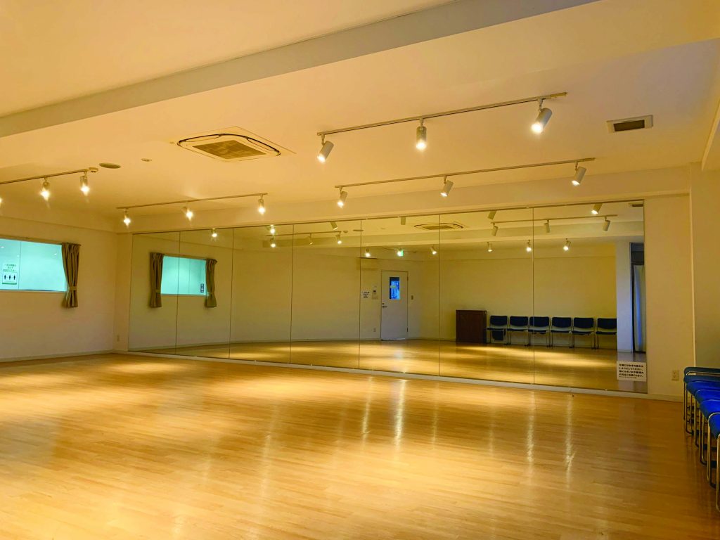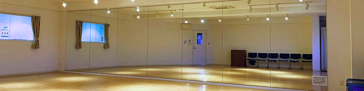 大きな鏡のある、開放感たっぷりのスタジオです。