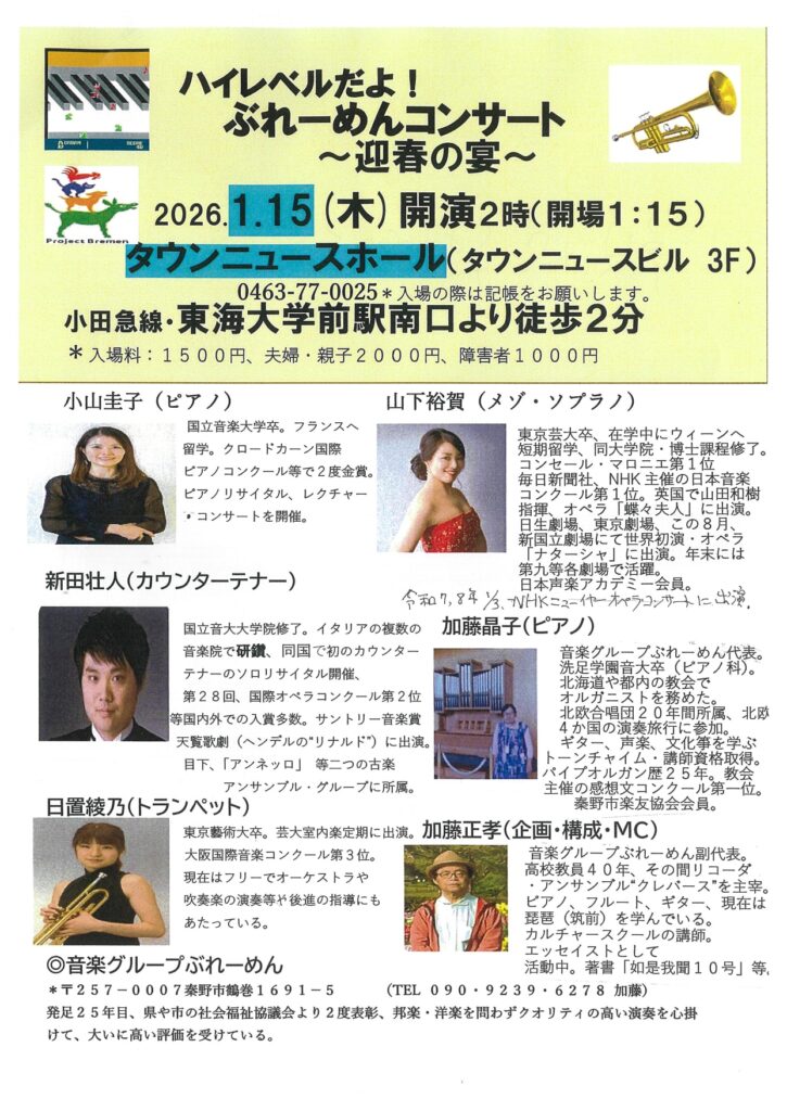 また、準備やリハーサル及び主催者の希望により主催者名や連絡先の記載をしない場合もありますのでどうぞご了承ください。